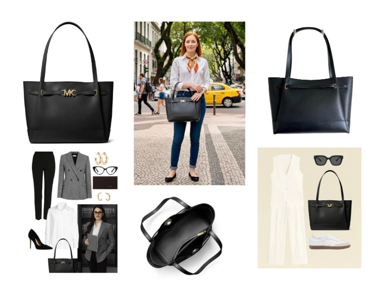 Bolsa em couro preta, da marca Michael Kors